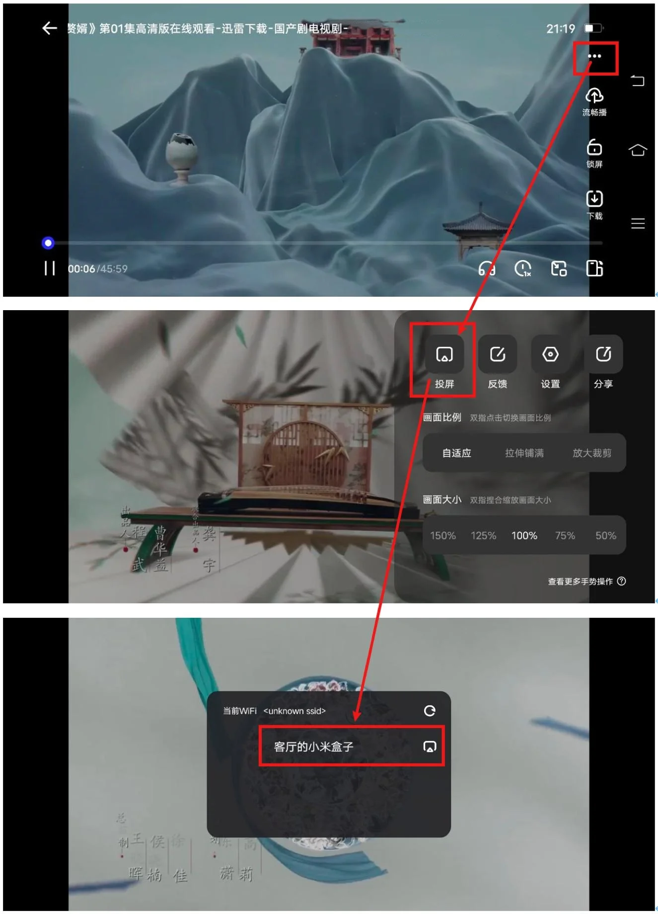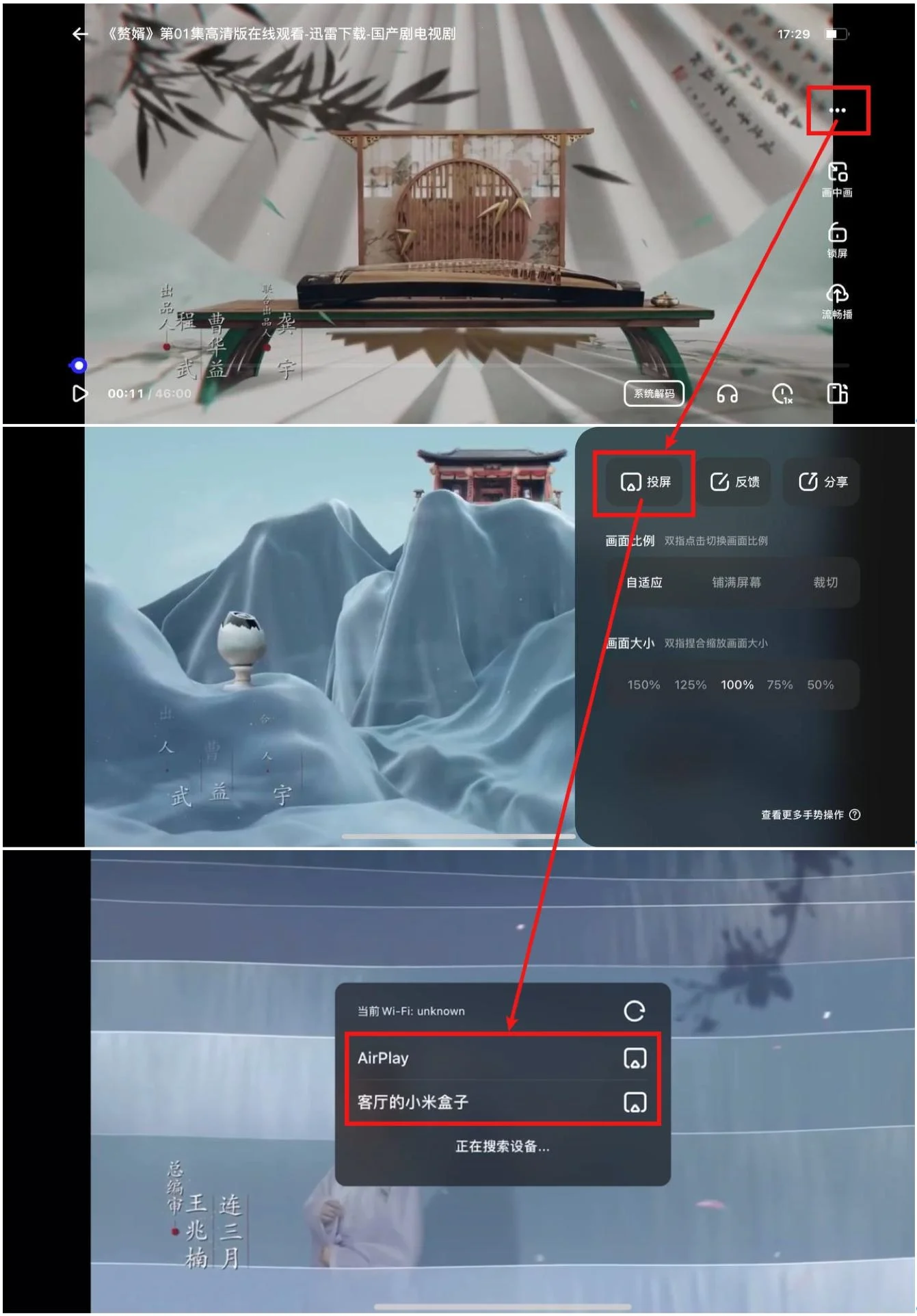 打开夸克浏览器->打开球圣短剧->播放视频->选择·····右上角 … ->投屏->等待搜寻出智能电视/电视盒子->选中,即可投屏。